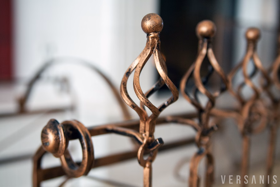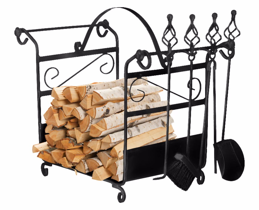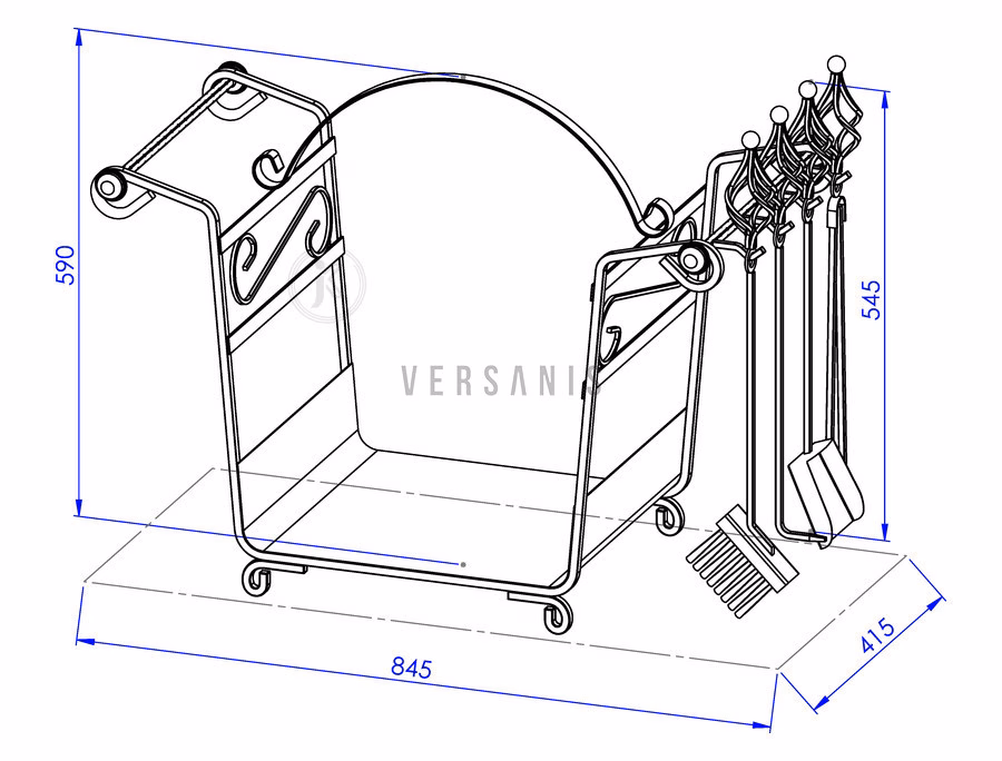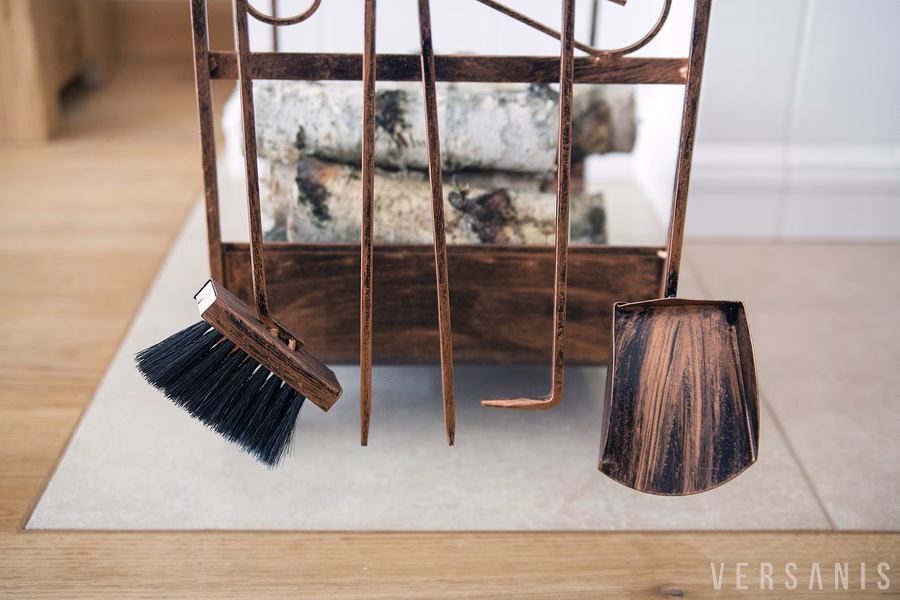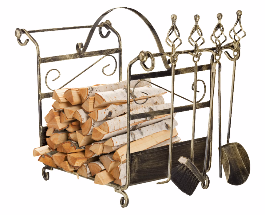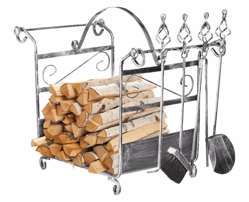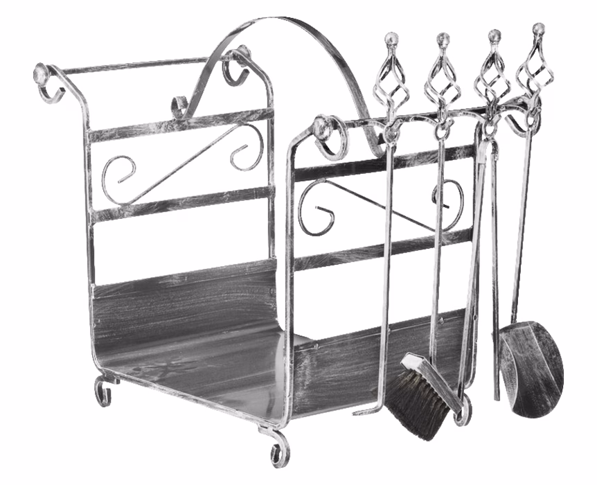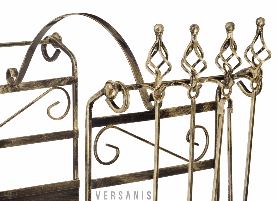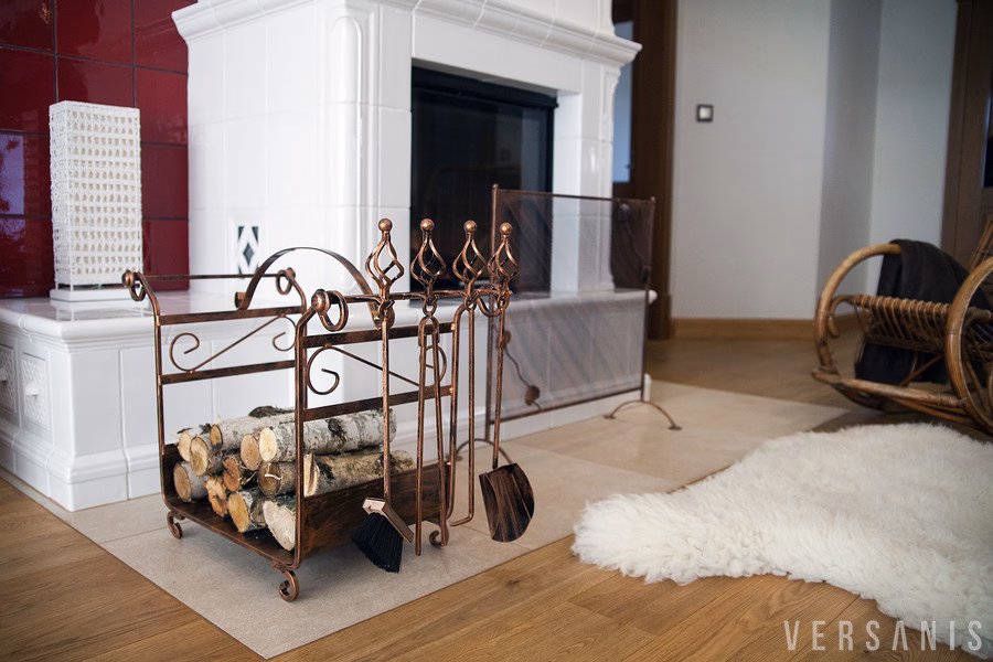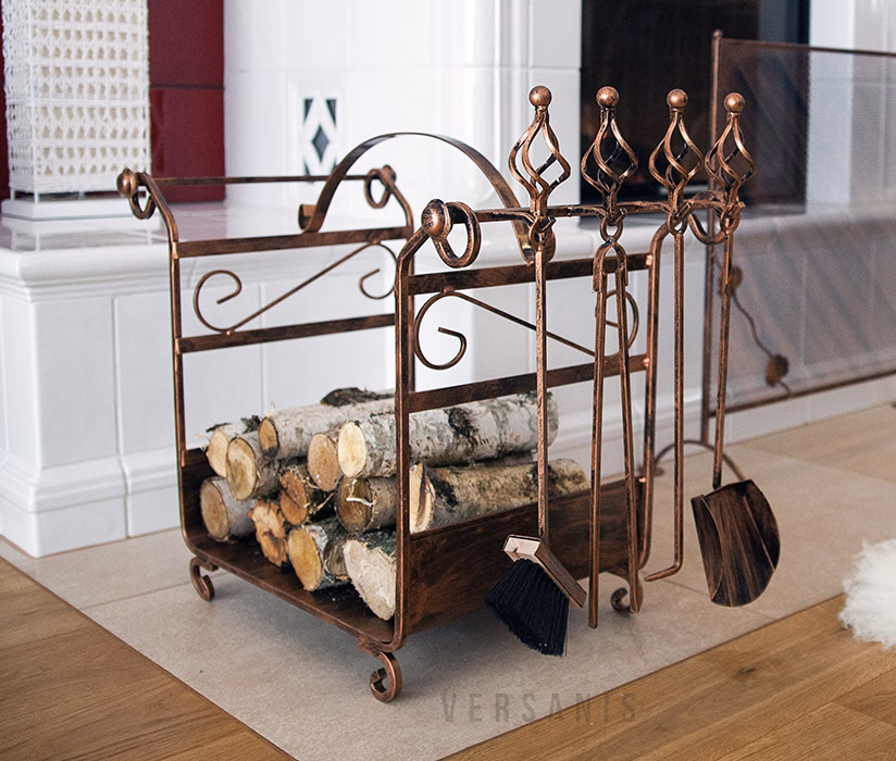 Pomieszczenia / Salon / Akcesoria kominkowe - Duży zestaw kominkowy z koszem na drewno Versanis to sklep specjalizujący się w naprawdę wyszukanych przedmiotach sztuki użytkowej. Wśród proponowanych przez nią rozwiązań można znaleźć wszystko, co jest potrzebne do domu, biura czy ogrodu. Każdy produkt wykonany jest z materiałów najwyższej jakości. Zestaw kominkowy Doskonałej jakości tego rodzaju akcesoria wykonane z metalu to bez wątpienia produkty, które powinny znaleźć się w domu każdego, kto posiada kominek. Oprócz standardowych szczypiec, szufelki, miotełki i pogrzebacza w zestawie znajduje się także piękny kosz na drewno. To ważne, aby otaczać się estetycznymi przedmiotami – a delikatnie zdobione akcesoria do kominka wraz z pasującym, metalowym koszem na drewno, z pewnością do takich należą. Ich zaletą jest bez wątpienia wytrzymałość – można ze spokojem używać ich nawet w wysokiej temperaturze - nie ulegną odkształceniom. Idealna dekoracja Piękny zestaw kominkowy to także świetna dekoracja do domów bez kominka. Dobrze i starannie wykonane będą prezentować się z klasą nawet w połączeniu z najbardziej stylowymi meblami. Taki zestaw świetnie sprawdzi się także na prezent dla osoby mającej kominek lub planującej go stworzyć.