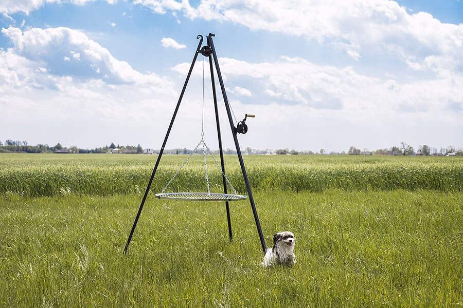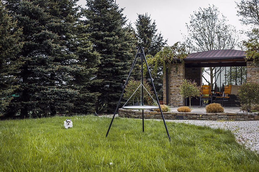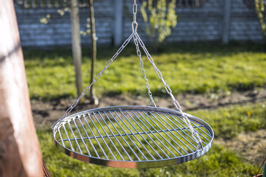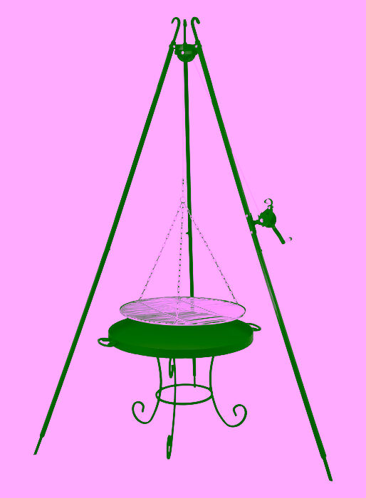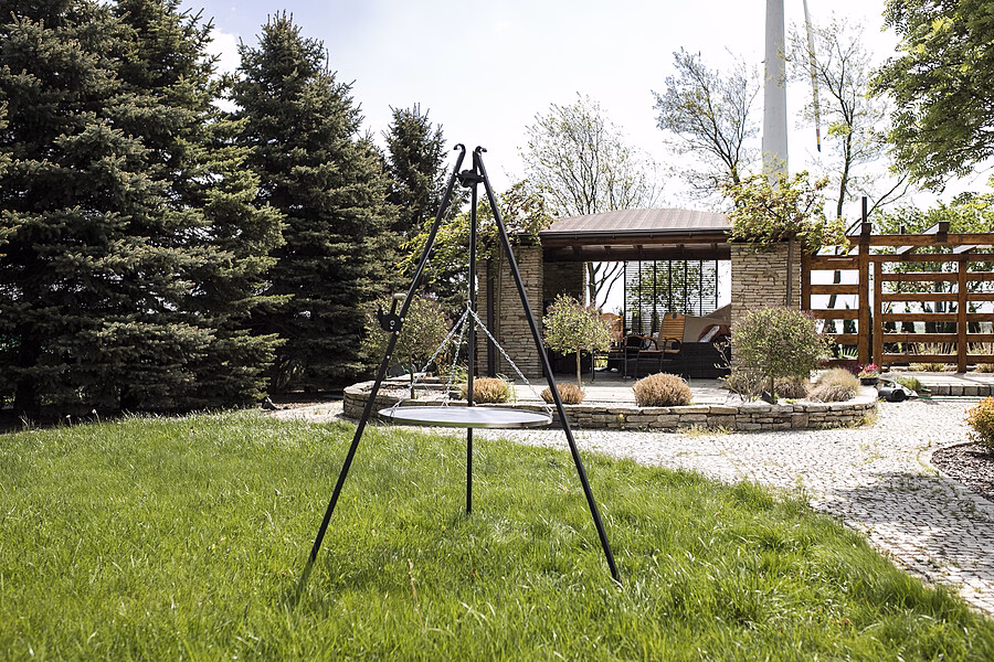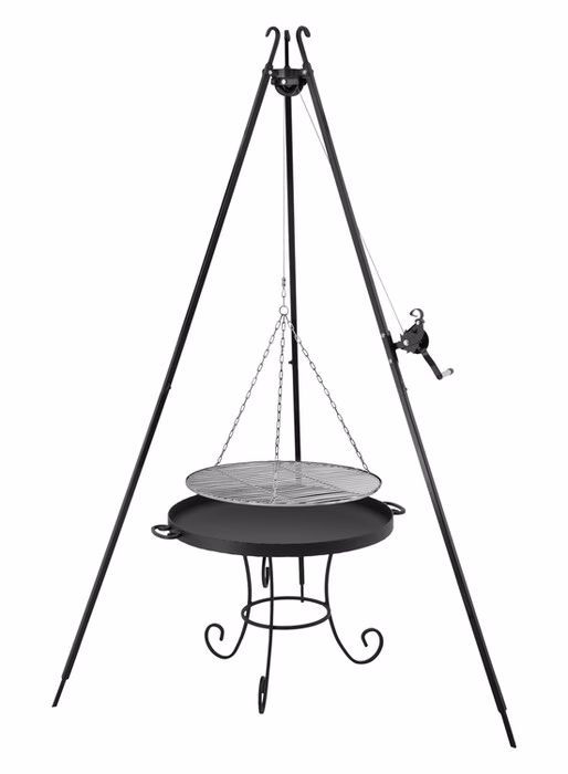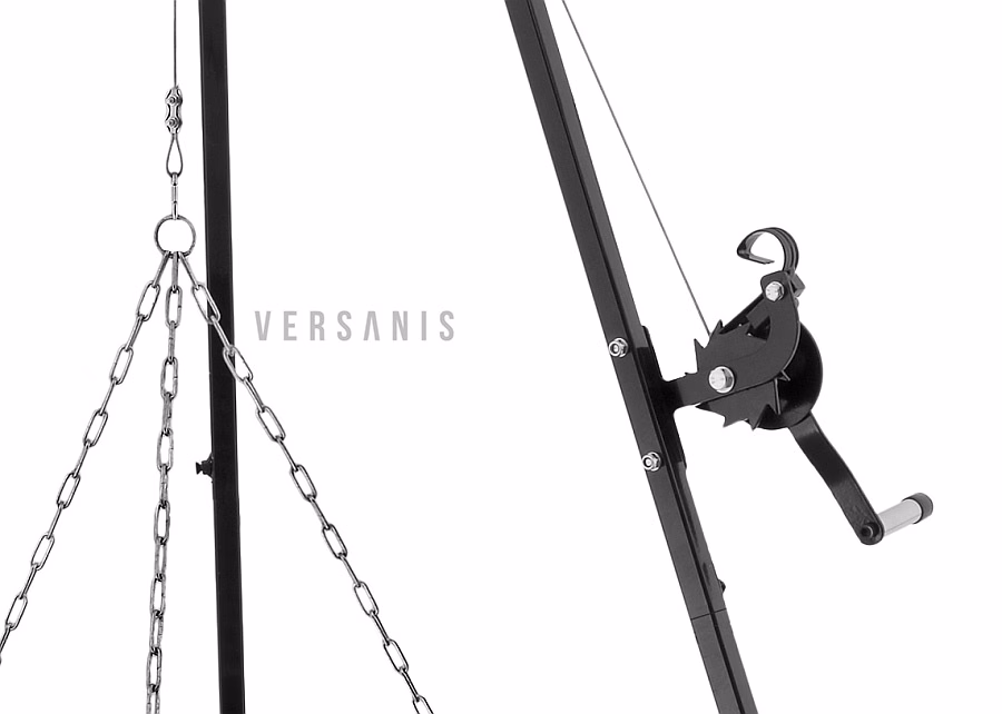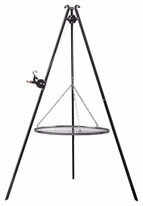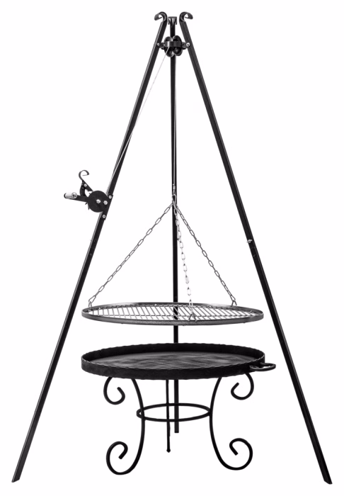 Ogród i balkon / Grille / Trójnogi - Grill ogrodowy trójnóg z kołowrotkiem i rusztem Nowoczesność i innowacyjny design połączone z klasyką i najprostszymi, sprawdzonymi rozwiązaniami konstrukcyjnymi – tym charakteryzuje się grill ogrodowy z oferty sklepu internetowego Versanis. Trzy nogi zapewniają stabilność i pozwalają ustawić go zarówno na tarasie, jak i na nierównym gruncie działki. Na stelażu zamocowano kołowrotek, podtrzymujący chromowany galwanicznie ruszt. Elegancki i efektowny grill ogrodowy z paleniskiem (w sklepie Versanis.pl można je dokupić osobno) przyda się każdemu, kto docenia wspólny czas spędzony na długich, letnich biesiadach pod gołym niebem. Jego nieskomplikowana forma ułatwia czyszczenie i przechowywanie poza sezonem. Wysokiej jakości, wytworzony w Polsce produkt zapewnia gwarancję długiej żywotności i funkcjonalności, którą docenią najbardziej wymagający.
