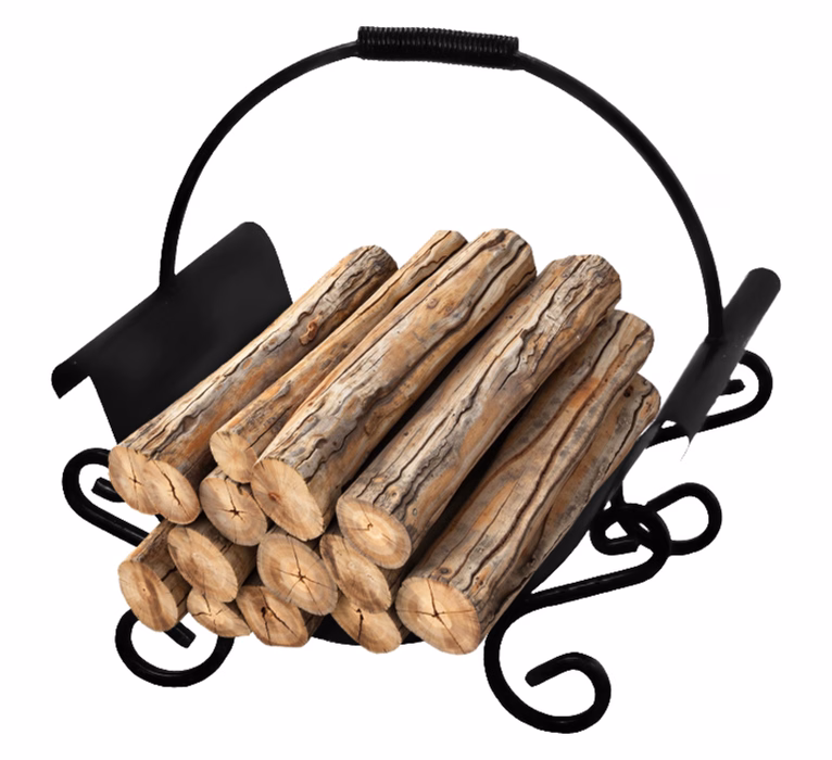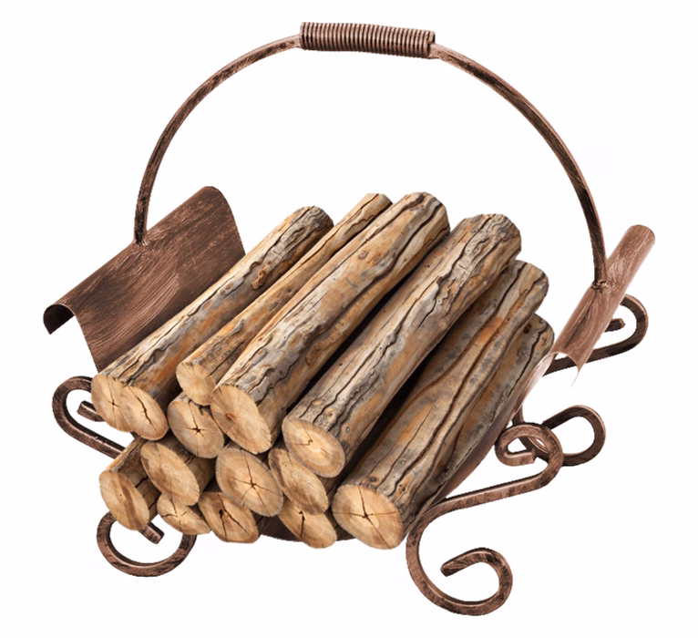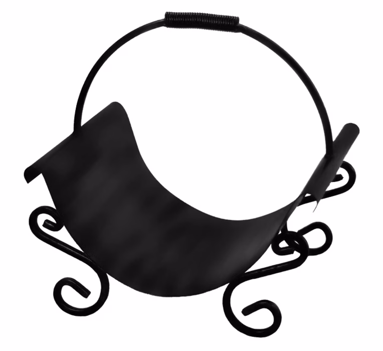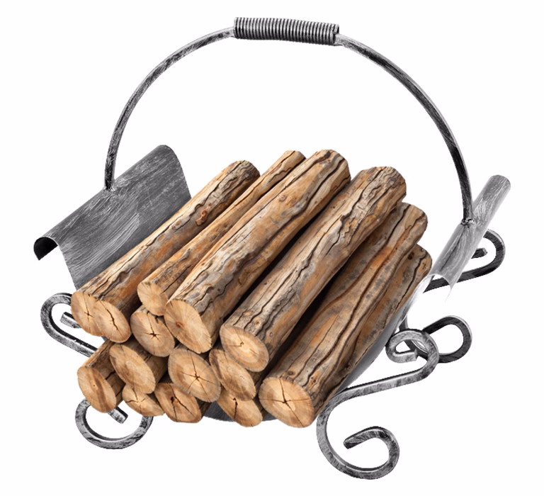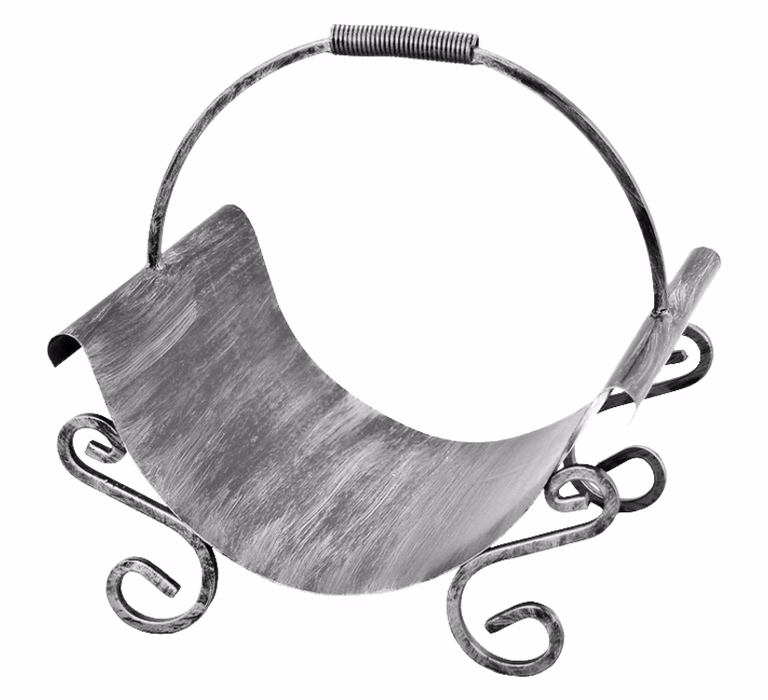 Pomieszczenia / Salon / Akcesoria kominkowe - Kosz na drewno do kominka Kosz na drewno przyda się wszystkim posiadaczom grilla bądź paleniska w ogrodzie, jak i dumnym właścicielom salonów z kominkiem. Wykonany z pełnej blachy kosz o subtelnie giętej, półokrągłej formie pomieści dużą ilość kawałków drewna, minimalizując konieczność jego częstego donoszenia. Zjawiskowy kosz na drewno kominkowe posiada cztery gięte z profili metalowych nóżki, które zapewniają mu stabilność nawet na miękkim gruncie. Trwałą, choć przy tym lekką konstrukcję można przenosić bez wysiłku dzięki wygodnemu uchwytowi z dekoracyjną rączką. W pokoju dziennym wpasuje się w wystrój nowoczesny i ten stylizowany na retro. Nie musisz wybierać między praktycznymi, a eleganckimi akcesoriami do kominków – ten kosz spełnia wszystkie te funkcje!