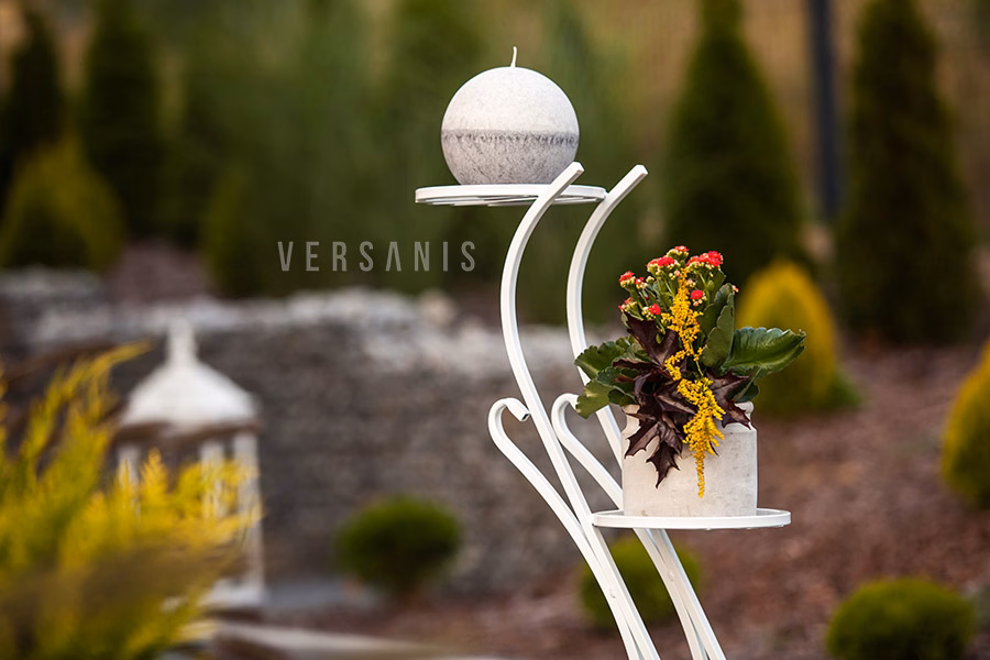 Dzięki niewielkim i subtelnym podstawkom, produkt znajdzie swoje zastosowanie jako półka na drobne przedmioty np. świece, figurki czy lampiony. Wyróżnia się starannym i precyzyjnym wykończeniem, z dbałością o każdy detal. Pochylona konstrukcja i wygięte zdobienia dodają jeszcze więcej uroku. Kwietnik w połączeniu z barwnymi kwiatami lub rozmaitymi dodatkami stworzy doskonałą dekorację nie tylko salonu, jadalni czy sypialni, ale także tarasu czy ogrodu.