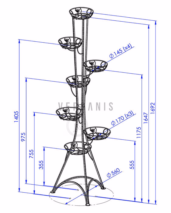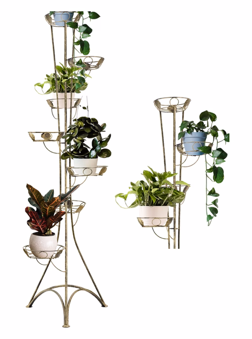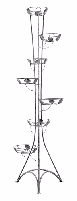 Dekoracje wnętrz / Kwietniki / Kwietniki duże - Wysoki kwietnik stojący na 7 kwiatów Kolumnowy kwietnik polskiego producenta sprawdzi się na tarasie, balkonie oraz w ogrodzie o dowolnej, zarówno nowoczesnej, jak i romantycznej aranżacji. Wykonany został metodą metaloplastyki i ozdobiony wykutymi w stali kwiatami, liśćmi i subtelnymi falkami. Składa się z siedmiu pojemnych podstawek, na których pięknie prezentować się będą donice z naszymi ulubionymi roślinami. Wyeksponowane na kwietniku z oferty sklepu internetowego Versanis zachwycą wszystkich Twoich gości. Jeśli lubisz zwracać uwagę na szczegóły, z pewnością ucieszy cię możliwość wyboru jednego z kilku modnych wariantów kolorystycznych, od białego, przez chrom po matową czerń. Pomimo swojej wysokości, metalowy stojak na donice jest wyjątkowo stabilny, trwały.