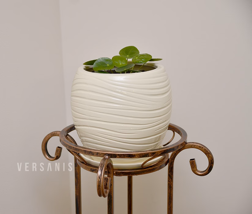 Dekoracje wnętrz / Kwietniki / Kwietniki duże - Kwietnik metalowy - kolumna większa Oszczędny w formie, wyjątkowo elegancki stojak na doniczki z kwiatami to polski produkt z oferty sklepu internetowego Versanis. Efektownie prezentował się będzie zarówno na tarasie, jak i jako element aranżacji gabinetu, pokoju dziennego albo hotelowego holu. Podobnie jak inne dostępne w naszej ofercie metalowe stojaki na kwiaty, również ten charakteryzuje się wyjątkową stabilnością, trwałością i odpornością. Wykonany został techniką metaloplastyki, która od kilku sezonów znów wraca do łask. Zakończony secesyjnymi, subtelnie giętymi elementami stojak na doniczki, zachwyci każdego estetę. Dzięki możliwości wyboru koloru malowanego proszkowo metalu, kwietnik bez trudu skomponuje się z pozostałymi elementami wyposażenia wnętrza. Pięknie prezentować się na nim będą zarówno rośliny zielone, jak i wiszące róże.