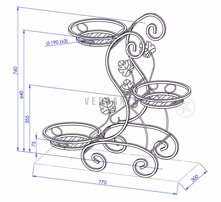 Dekoracje wnętrz / Kwietniki / Kwietniki niskie - Kwietnik dekoracyjny na trzy rośliny Pomysłowe rozwiązanie do ogrodu bądź na taras? Kwietnik z oferty sklepu internetowego Versanis! Szczególnie ten inspirowany stylem secesyjnym, niezwykle wyszukany i elegancki, wykonany metodą metaloplastyki. Przyciąga wzrok ciekawą, kutą w metalu formą. Spełnia przy tym wszystkie praktyczne założenia: jest wytrzymały i odporny, można więc przez całe lato przechowywać go na zewnątrz. Odcień metalowej konstrukcji można dopasować do pozostałych mebli i dodatków, wybierając pomiędzy kilkoma wersjami kolorystycznymi. Nowoczesny kwietnik posiada trzy praktyczne podstawy na donice z twoimi ulubionymi roślinami.