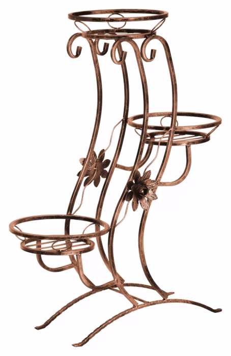 Dekoracje wnętrz / Kwietniki / Kwietniki duże - Kwietnik metalowy na 3 donice Metalowy kwietnik z oferty sklepu internetowego Versanis to szykowny pomysł do ogrodu bądź na taras. Wykonany metodą metaloplastyki przez polskiego producenta, dodatkowo ozdobiony został kutymi w stali motywami roślinnymi i delikatnymi, secesyjnymi w klimacie falami. Stojak metalowy do kwiatów spełni oczekiwania najbardziej wymagających: jest trwały, a jego odpowiednio zaprojektowany i wyważony stelaż gwarantuje stabilność. Dzięki użyciu najlepszej jakości surowców, można go ustawiać także na zewnątrz bez obawy o zniszczenie na przykład z powodu deszczu. Odcień malowanej proszkowo, metalowej konstrukcji można dopasować do pozostałych mebli i dodatków, wybierając pomiędzy kilkoma wersjami kolorystycznymi. Na nowoczesny kwietnik składają się trzy praktyczne podstawy na donice, które pomogą wyeksponować najlepsze okazy z twojej kolekcji roślin.