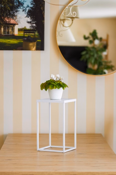 Dekoracje wnętrz / Kwietniki / Kwietniki niskie - Kwietnik metalowy stojący LOFT - 40 cm. Elegancki i nowoczesny metalowy stojak na rośliny został zaprojektowany z myślą o miłośnikach roślin i estetycznym wnętrzu. Jego uniwersalny design sprawia, że doskonale wpisuje się w różne style wnętrz - od minimalistycznych po klasyczne. Jest to nie tylko funkcjonalny kwietnik, ale także stylowe i praktyczne miejsce do prezentacji ulubionych roślin. Cechy produktu: Materiał: Wykonany z wysokiej jakości metalu, odpornego na korozję i zarysowania, co gwarantuje długą żywotność produktu. Design: Nowoczesna, prosta forma z subtelnymi detalami sprawia, że stojak staje się eleganckim elementem dekoracyjnym. Funkcjonalność: Poza miejscem na rośliny, stojak posiada również blat, który może służyć jako dodatkowa przestrzeń do przechowywania lub wystawiania innych dekoracji. Stabilność: Szeroka podstawa zapewnia stabilność nawet dla większych roślin. Wielofunkcyjność: Idealny nie tylko dla roślin, ale także jako stolik pomocniczy, stojak na książki lub inne akcesoria. Łatwość montażu: W zestawie wszystko, co potrzebne do szybkiego i prostego montażu. Zastosowanie: Metalowy stojak-kwietnik z blatem będzie idealnym rozwiązaniem dla tych, którzy chcą wprowadzić do swojego wnętrza odrobinę zieleni, zachowując przy tym elegancję i funkcjonalność. Świetnie sprawdzi się w salonie, sypialni, biurze czy na balkonie. Zalecenia: Aby zachować piękno produktu, zaleca się regularne czyszczenie miękką szmatką. Unikaj bezpośredniego kontaktu z wodą oraz ekstremalnych temperatur. Wyraź swój styl i podkreśl piękno roślin dzięki temu wyjątkowemu metalowemu stojakowi z blatem. Skomponuj własne zielone zakątki w domu lub biurze!