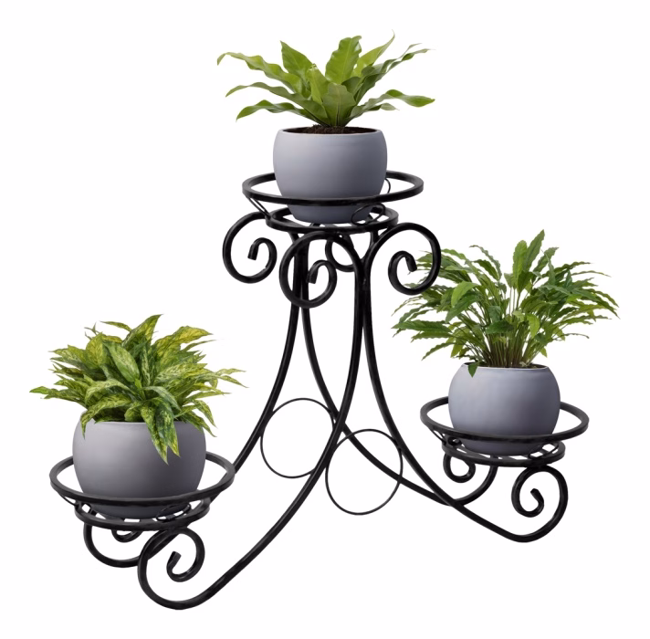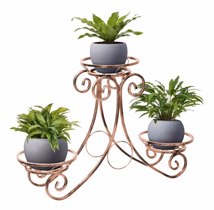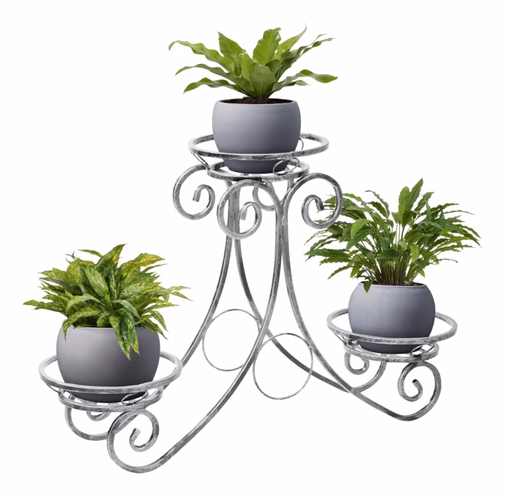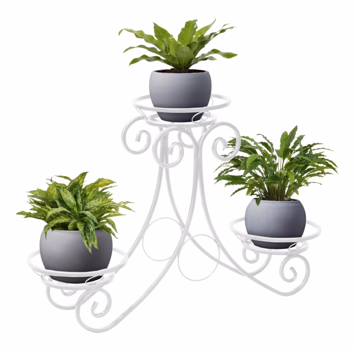 Dekoracje wnętrz / Kwietniki / Kwietniki niskie - Kwietnik na trzy rośliny - Podium Kwietnik metalowy z oferty sklepu Versanis jest nowoczesny, ale posiada również romantycznego ducha, swoim kształtem nawiązując do stylistyki art deco. Pomoże w ciekawy sposób zaaranżować przestronny hol, salon albo ogród. Ten stylowy kwietnik wykonany został metodą metaloplastyki w pracowni polskiego producenta. Jest trwały i odporny na działanie takich czynników, jak deszcz czy słońce. Wystarczy wybrać jeden z kilku wariantów kolorystycznych malowanego proszkowo metalu, żeby perfekcyjnie skomponował się z innymi elementami. Ten potrójny kwietnik, przypominający formą podium, jest trwały , a jednocześnie lekki – można bez trudu przestawiać go według aktualnych potrzeb czy pomysłu. Donice ustawia się praktycznych podstawkach, które pomieszczą również większe rośliny.