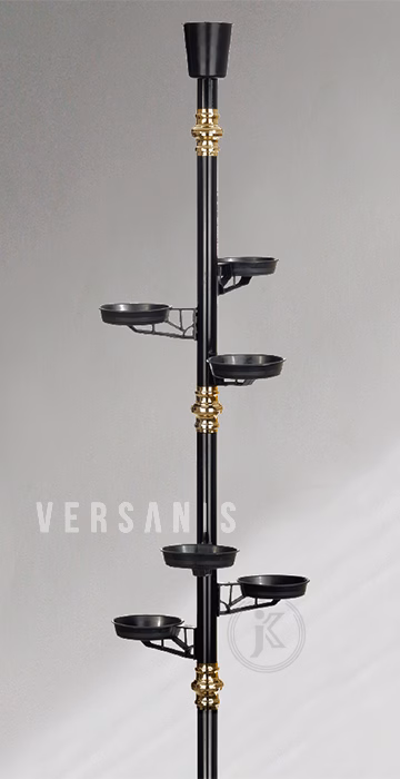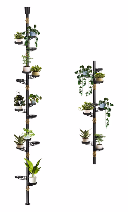 Dekoracje wnętrz / Kwietniki / Kwietniki rurkowe - Wysoki kwietnik - teleskopowy stojak na 15 roślin To kwietnik, który wyeksponuje rozmaite rodzaje roślin, podkreślając ich naturalne piękno. Opisywany model od Versanis zachwyci największych miłośników zieleni w swoim domu. Przeznaczony jest aż na 15 doniczek, które ozdobią pomieszczenie od podłogi, aż po sam sufit. Konstrukcja kwietnika jest bardzo oryginalna, potrafi wnieść do wnętrza wiele przytulności i sielskiego klimatu. Pozwala na maksymalne zajęcie przestrzeni. Rozmaite, kolorowe i pnące się rośliny w połączeniu z kwietnikiem stworzą bardzo efektowną kompozycję. Model ten świetnie sprawdzi się jako wystrój sypialni, pokoju dziennego czy przedpokoju. Przyciągnie uwagę swoją niebanalną formą i doskonale uwydatni urok różnego rodzaju roślin. To także świetny sposób na pomieszczenie wszystkich ulubionych kwiatów, które razem stworzą niepowtarzalną aranżację. Produkt wyróżnia się stabilnością i wytrzymałością, dzięki najwyższej jakości materiałom. Bez problemu poradzi sobie z obciążeniem dużej liczby doniczek. Sprzedawany jest w opakowaniach kartonowych, ułatwiających transport.