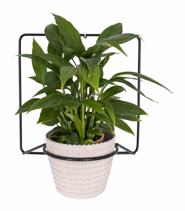 Dekoracje wnętrz / Kwietniki / Kwietniki ścienne - Metalowy kwietnik ścienny - BIN Wykonany z metalu Przeznaczenie na jedną donicę Zabezpieczony powłoką lakierniczą odporną na wilgoć i warunki atmosferyczne Bardzo dobrze sprawdzi się we wnętrzu jak i na zewnątrz Dostępny w kolorze czarnym, białym oraz złotym Utrzyma ciężar do 7 kg. Średnica podstawy na kwiaty to 17 cm. Posiada obręcz stabilizującą roślinę, zabezpieczającą przed przechyleniem Eleganckie i dekoracyjne plecki w kształcie odwróconego diamentu Wysyłany w całości bez konieczności samodzielnego skręcania Kwietnik ścienny Prezentujemy, jeden z najmodniejszych kwietników ściennych tego sezonu. Piękna, prosta, nienachalna forma to kwintesencja do idealnego wyeksponowania Twojej rośliny. To ona będzie odgrywać na nim główną rolę. Kwietnik Delie świetnie sprawdzi się w każdym wnętrzu. Posiada mocną i stabilną konstrukcję, co w przypadku wiszącego kwietnika jest ogromnie ważne. Kolejnym atutem jest dość dużej średnicy obręcz na donicę – 17 cm. Pozwoli ona na wyeksponowanie roślin o sporej wielkości. Powłoka lakiernicza i odporność na wilgoć Kwietnik został pomalowany farbą proszkową utwardzaną w wysokiej temperaturze. Ten zabieg zapewnia odporność produktu na działanie atmosferyczne, dzięki czemu doskonale sprawdzi się nie tylko we wnętrzach ale również w antresolach, na tarasach czy balkonach. Warianty kolorystyczne Oferujemy trzy ponadczasowe odcieni do wyboru. Dzięki tej możliwości jeszcze łatwiej wkomponujesz go w swoją przestrzeń. Dostępnymi kolorami do wyboru są: czarny półmat, biały oraz złoty.