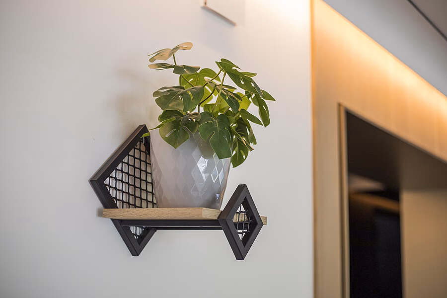 Pomieszczenia / Salon / Półki i regały / Półki - Kwietnik ścienny, półka z blatem Wykonany w Polsce przez polskiego producenta Szerokość podstawy na kwiat - 22 cm. Uniwersalna, minimalistyczna forma Stabilna i mocna konstrukcja Pokryty powłoką lakierniczą odporną na wilgoć i korozje Ze względu na kompaktowe wymiary zajmuje niewielką przestrzeń Połączenie nowoczesności i funkcjonalności Blat wykonany z płyty meblowej w odcieniu Dąb Sonoma Produkt, który posłuży Ci przez długie lata Idealny jako półka na książki, kwiaty i ozdoby dekoracyjne. Kwietnik na ścianę ścienna wisząca półka Prezentujemy nowoczesną czarny półkę wiszącą, która idealnie sprawdzi się jako kwietnik bądź podstawa na książki. Wykonany z metalu pokryty powłoką lakierniczą utwardzaną w wysokiej temperaturze, dzięki czemu kwietnik jest bardzo oporny na obtarcia i zarysowania. Nada Twojemu wnętrzu niepowtarzalny charakter a przy tym nie przytłoczy pomieszczania swoją formą. Zastosowanie w mieszkaniu, biurze, hotelu, restauracji.