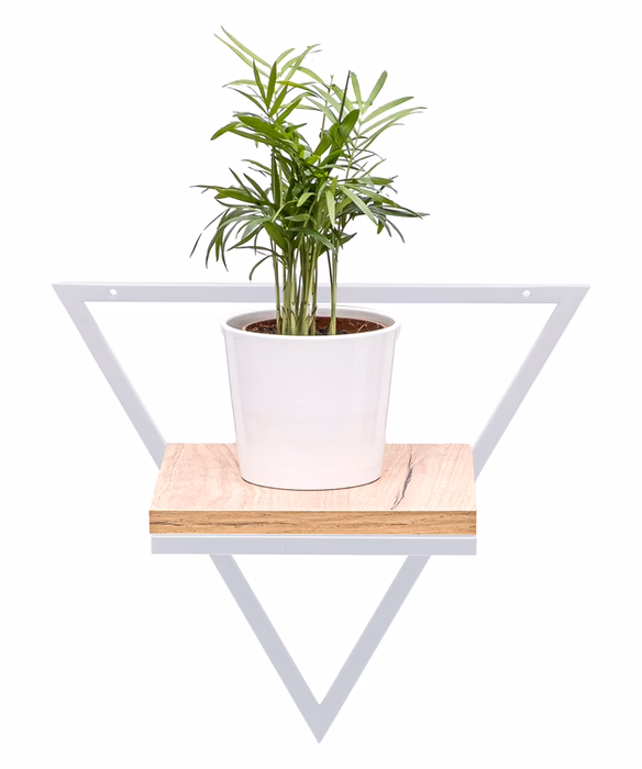 Kwietnik ścienny trójkąt z deską to nowoczesny, funkcjonalny element dekoracyjny, który doskonale łączy estetykę z praktycznością. Jego minimalistyczny design oraz geometria w kształcie trójkąta sprawiają, że stanie się wyjątkowym akcentem w każdym wnętrzu, zarówno w stylu industrialnym, skandynawskim, jak i nowoczesnym. Ten kwietnik to idealne rozwiązanie dla osób, które chcą dodać przestrzeni nieco natury, nie rezygnując z oszczędnych i eleganckich form.