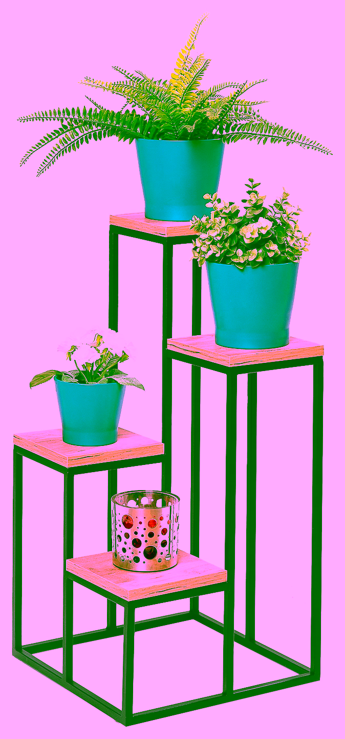 Dekoracje wnętrz / Kwietniki / Kwietniki duże - Metalowy kwietnik, stojak na rośliny z czterema drewnianymi blatami Dodaj elegancji i stylu swojemu wnętrzu z naszym wyjątkowym metalowym kwietnikiem z czterema blatami. Ten designerski element wyposażenia łączy w sobie funkcjonalność, trwałość i estetykę, tworząc idealne miejsce na eksponowanie Twoich ulubionych roślin doniczkowych. Wytrzymała konstrukcja z metalu: Nasz kwietnik wykonany jest z wysokiej jakości stali malowanej proszkowo, co zapewnia długowieczność i odporność na korozję. Solidna rama gwarantuje stabilność, nawet przy maksymalnym obciążeniu. Blaty emitujące drewno: Cztery blaty wykonane są z materiału, który doskonale imituje naturalne drewno. Powierzchnia blatów jest nie tylko estetyczna, ale także łatwa do utrzymania w czystości. Dzięki temu kwietnik harmonijnie wpasuje się w różne style wnętrzarskie, od skandynawskiego po industrialny. Przemyślany design: Kwietnik posiada cztery poziomy, co umożliwia efektowne wyeksponowanie roślin o różnej wysokości. Blaty są rozmieszczone w sposób zapewniający odpowiednią przestrzeń między roślinami, co sprzyja ich zdrowemu wzrostowi. Uniwersalne zastosowanie: Dzięki eleganckiemu wyglądowi i funkcjonalności, kwietnik świetnie sprawdzi się zarówno wewnątrz domu, jak i na zewnątrz. Możesz go umieścić w salonie, na balkonie, tarasie czy w ogrodzie zimowym. Łatwy montaż: Kwietnik dzięki odpowiednio wykonanej konstrukcji sprzedawany jest w całości, bez konieczności samodzielnego montażu Zastosowanie: Metalowy kwietnik z czterema blatami to idealne rozwiązanie dla miłośników roślin, którzy chcą w elegancki sposób wyeksponować swoje zielone dekoracje. Sprawdzi się zarówno w przestrzeniach mieszkalnych, jak i komercyjnych, takich jak biura, kawiarnie czy restauracje, dodając im niepowtarzalnego charakteru i naturalnego uroku. Jeśli szukasz wyrafinowanego i funkcjonalnego kwietnika, nasz metalowy kwietnik z czterema blatami emitującymi drewno jest doskonałym wyborem. Dzięki wysokiej jakości materiałom, starannemu wykonaniu i przemyślanemu designowi, stanie się nie tylko praktycznym, ale i estetycznym elementem Twojego wnętrza.