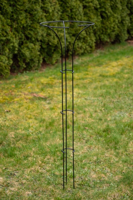 Podpora została pomalowana farbą proszkową utwardzaną w wysokiej temperaturze. Ten zabieg zapewnia odporność produktu na działanie atmosferyczne, dzięki czemu doskonale sprawdzi się zarówno do roślin ogrodowych jak i doniczkowych.