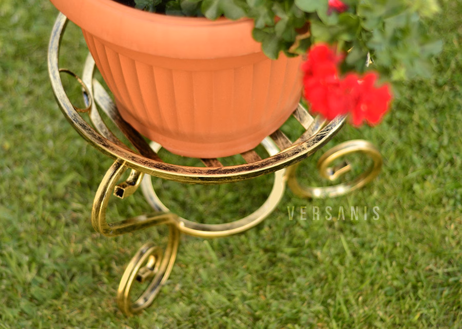 Dekoracje wnętrz / Kwietniki / Kwietniki niskie - Kwietnik metalowy niski - Palma Ozdobny stojak na kwiaty z metalu to prawdziwy hit sklepu internetowego Versanis. Może zagrać rolę kwietnika do holu lub pokoju dziennego, ale zaprezentowany na tarasie lub w ogrodzie będzie wyglądał tak samo efektownie. Dla wyjątkowego efektu można połączyć go z innymi kwietnikami w podobnym stylu. Elegancki metalowy stelaż wykonany został przez polskiego producenta metodą metaloplastyki. Ten ekskluzywny stojak na dużą donicę występuje w kilku różnych wariantach barwnych do wyboru, dzięki czemu bez problemu możesz go dopasować do stylu otoczenia. Stabilność nadają kwietnikowi trzy idealnie wyważone i stylowo wygięte nogi, inspirowane secesyjnym wzornictwem. Na praktycznej podstawie na donicę zmieści się nawet duża roślina, na przykład kaskadowo spływająca.