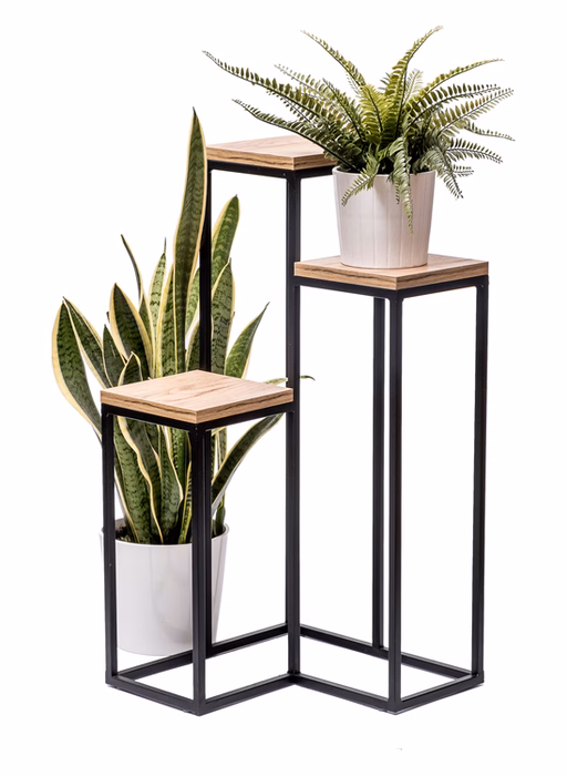 Dekoracje wnętrz - Stojak na kwiaty. Metalowy kwietnik 3 poziomy LOFT Metalowy kwietnik 3-poziomowy LOFT – stylowy stojak na kwiaty Stojak na kwiaty LOFT to idealne połączenie funkcjonalności, estetyki i trwałości, które doskonale wkomponuje się w każde wnętrze. Wykonany z solidnego metalu, ten 3-poziomowy kwietnik jest nie tylko praktyczny, ale także stanowi elegancki element dekoracyjny, który podkreśli piękno Twoich roślin. Cechy i zalety produktu: Nowoczesny design w stylu loft: Stojak na kwiaty LOFT wyróżnia się minimalistycznym, geometrycznym kształtem, który idealnie wpisuje się w trendy industrialne i nowoczesne. Czarna matowa powierzchnia dodaje mu elegancji i sprawia, że pasuje zarówno do surowych wnętrz, jak i bardziej klasycznych aranżacji. Trzy poziomy ekspozycji: Kwietnik posiada trzy różnej wysokości platformy, które pozwalają na efektowne prezentowanie roślin o różnych rozmiarach. To doskonały sposób, aby stworzyć zieloną aranżację w pionie, oszczędzając miejsce w pomieszczeniu. Solidna konstrukcja: Produkt wykonany jest z wysokiej jakości metalu, który gwarantuje stabilność i wytrzymałość. Odporność na uszkodzenia mechaniczne oraz łatwość w utrzymaniu czystości czynią go praktycznym wyborem na lata. Uniwersalne zastosowanie: Kwietnik doskonale sprawdzi się zarówno wewnątrz domu, jak i na balkonie, tarasie czy w ogrodzie zimowym. Może pełnić rolę dekoracyjnego elementu w salonie, sypialni, kuchni, a nawet w biurze. Dlaczego warto wybrać ten kwietnik? Metalowy kwietnik LOFT to doskonały wybór dla osób, które cenią sobie oryginalne, a jednocześnie funkcjonalne rozwiązania. Dzięki niemu Twoje kwiaty będą pięknie wyeksponowane, a wnętrze zyska stylowy i nowoczesny charakter. To także świetny pomysł na prezent dla miłośników roślin i designu. Podkreśl piękno swojej zieleni dzięki wyjątkowemu stojakowi na kwiaty LOFT i stwórz niepowtarzalną aranżację w swoim domu!