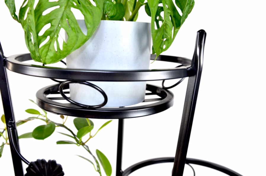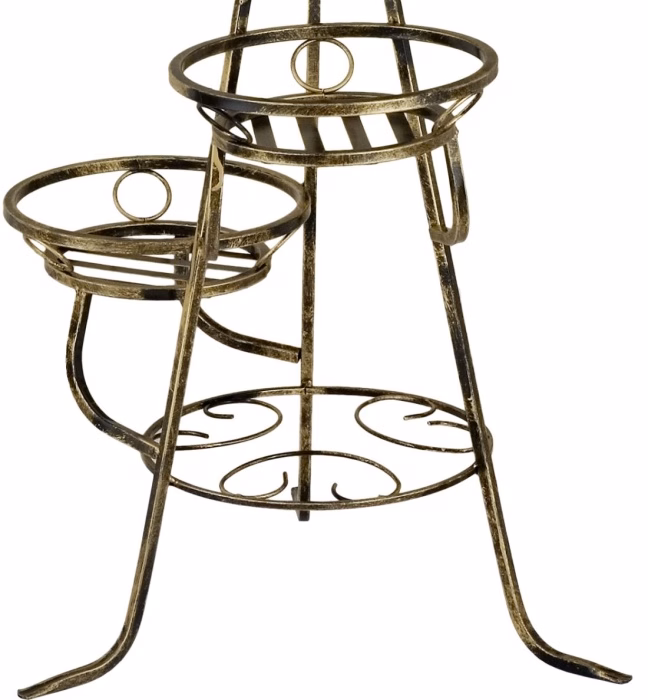 Dekoracje wnętrz / Kwietniki / Kwietniki duże - Wysoki Kwietnik na 7 doniczek Brakuje Ci pomysłu na to, w jaki sposób rozmieścić w mieszkaniu kwiaty doniczkowe? Na parapetach zaczyna brakować miejsca, a ciepłe powietrze, które uwalnia się z rozgrzanych grzejników prowadzi do uszkodzeń liści Twoich roślin? Proponujemy rozwiązanie, które uchroni je przed bliskim sąsiedztwem kaloryferów, a także przed bezpośrednią ekspozycją na promienie słoneczne wdzierające się przez szybę w oknie. Kwietnik 7-ka powstał właśnie z myślą o miłośnikach roślin domowych. Jego konstrukcja pozwala na stworzenie w jednym miejscu pokaźnej, bo mieszczącej aż siedem doniczek, roślinnej kaskady. Wysoki na niemal dwa metry kwietnik został zaprojektowany w taki sposób, aby nie zajmować zbyt wiele miejsca – okrągłe, metalowe koszyczki na doniczki znajdują się w bliskim sąsiedztwie głównego stelaża. Materiał w kolorze złotej patyny sprawia, że kwietnik prezentuje się wyjątkowo. Elegancji dodają mu pnące się gdzie niegdzie metalowe elementy roślinne.