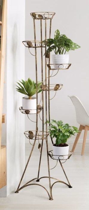 Dekoracje wnętrz / Kwietniki / Kwietniki duże - Kwietnik metalowy 7-ka WA Kwietnik kolumnowy z oferty sklepu internetowego Versanis ma romantyczny i elegancki charakter, który od razu odmieni wygląd tarasu bądź ogrodu. Kwietnik ozdobiony został kutymi w stali kwiatami, liśćmi i subtelnymi falkami. Ten wysoki stojak na donice składa się z siedmiu pojemnych podstawek, na których pięknie prezentować się będą nasze ulubione rośliny, przede wszystkim te wiszące. Pięknie, kaskadowo spływając z góry, zachwycą wszystkich twoich gości. Jeśli lubisz zadbane w najmniejszym detalu otoczenie, z pewnością docenisz możliwość wyboru jednego z kilku stylowych wariantów kolorystycznych, od białego, przez chrom po matową czerń z ciekawą strukturą. Ten wysoki kwietnik jest wyjątkowo stabilny i trwały.