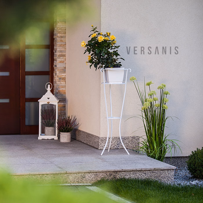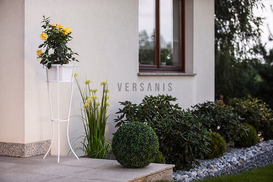 Dekoracje wnętrz / Kwietniki / Kwietniki duże - Kwietnik 1-ka na jedną donicę Prosty i nowoczesny, a jednocześnie subtelnie nawiązujący do romantycznego stylu stojak na pojedynczą donicę można ustawić wewnątrz, na przykład w pokoju dziennym, jak i na zewnątrz, na przykład na tarasie. Ten stylowy kwietnik stojący ze sklepu internetowego Versanis wykonany wciąż modną metodą metaloplastyki. Wykonany z najlepszych surowców, charakteryzuje się trwałością i odpornością na działanie czynników zewnętrznych. Można dopasować go do innych elementów wystroju, wybierając jeden z kilku wariantów kolorystycznych malowanego proszkowo metalu. Stojak jest trwały, a jednocześnie lekki – można bez problemu przestawiać go według aktualnych potrzeb. Pięknie prezentować się będzie ustawiona na stojaku donica tak z rośliną wiszącą, jak i niewielkim sukulentem.