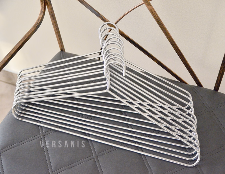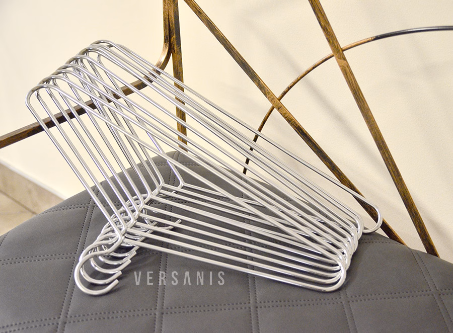 Pomieszczenia / Przedpokój / Wieszaki - Wieszak na ubrania - chrom Versanis to firma, w której znajdziesz praktyczne akcesoria do domu i ogrodu. Wszystkie propozycje, które znajdziesz w sklepie, to rzeczy wysokiej jakości charakteryzujące się pięknym oraz co ważne - solidnym wykonaniem. Jeżeli chcesz, aby w Twoim domu znalazły się tylko funkcjonalne przedmioty sztuki użytkowej, to znajdziesz je właśnie tutaj. Wieszak do szafy Metalowy wieszak do szafy to gadżet trwały, solidny i użyteczny. Powinien znaleźć się w każdej garderobie. Dzięki wykonaniu z metalu nie wygina się i cały czas pozostaje stabilny, co znacznie ułatwia wieszanie na nim ubrań. Prezentuje się minimalistycznie, ale wysoce atrakcyjnie. Szafa dobrze zorganizowana W każdej szafie powinno być chociaż kilka solidnych wieszaków na ubrania, aby zawsze mieć odpowiednio dużo miejsca na wieszanie rzeczy. Dzięki nim można zachować porządek i wszystko trzymać na swoim miejscu. Za pomocą dobrych jakościowo, metalowych wieszaków jesteś w stanie zorganizować swoją garderobę tak, aby jak najlepiej Ci służyła. Za pomocą tych użytecznych przedmiotów możesz sprawić, aby codzienne wybieranie ubrań stało się przyjemnością. Warto też podkreślić, że wieszaki świetnie sprawdzą się w każdym pomieszczeniu w domu.