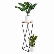 Metalowy kwietnik, stojak na rośliny z czterema drewnianymi blatami